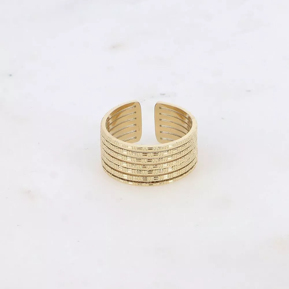Bague large en acier inoxydable composée de petits motifs points martelés de type quadrillé.