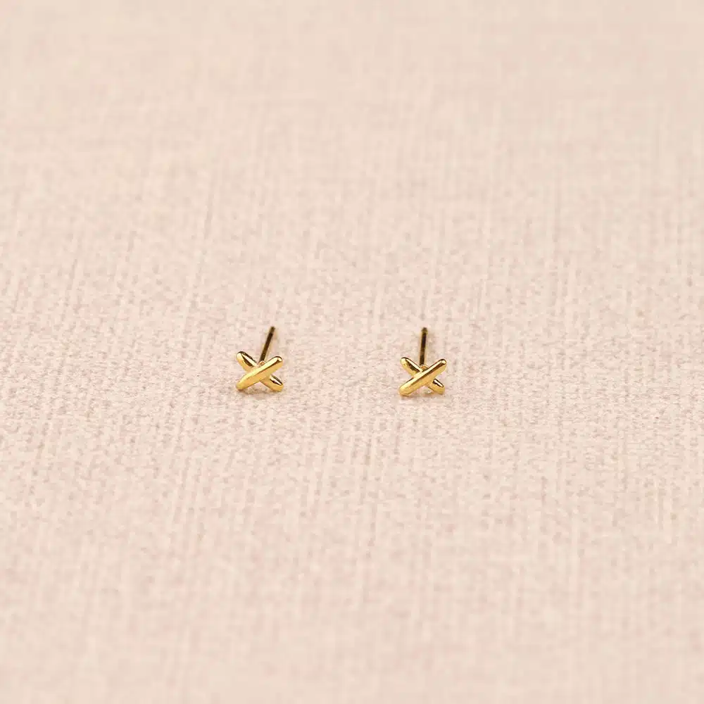 Boucles d’oreilles Ornet en acier inoxydable, puces en forme de croix. Diamètre de 4mm, doré