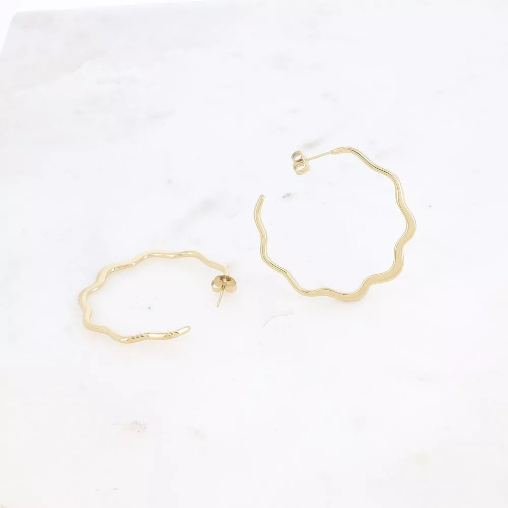 Boucles d’oreilles type créoles fines en acier inoxydable composées d’un anneau fin ondulé.