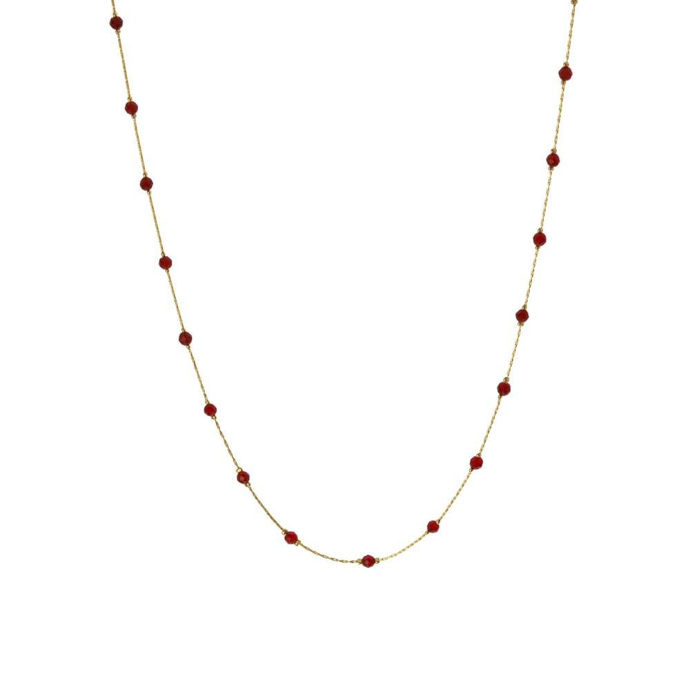 Collier Bibi en acier inoxydable 40cm + 3cm d’extension, perles en cristal rouge