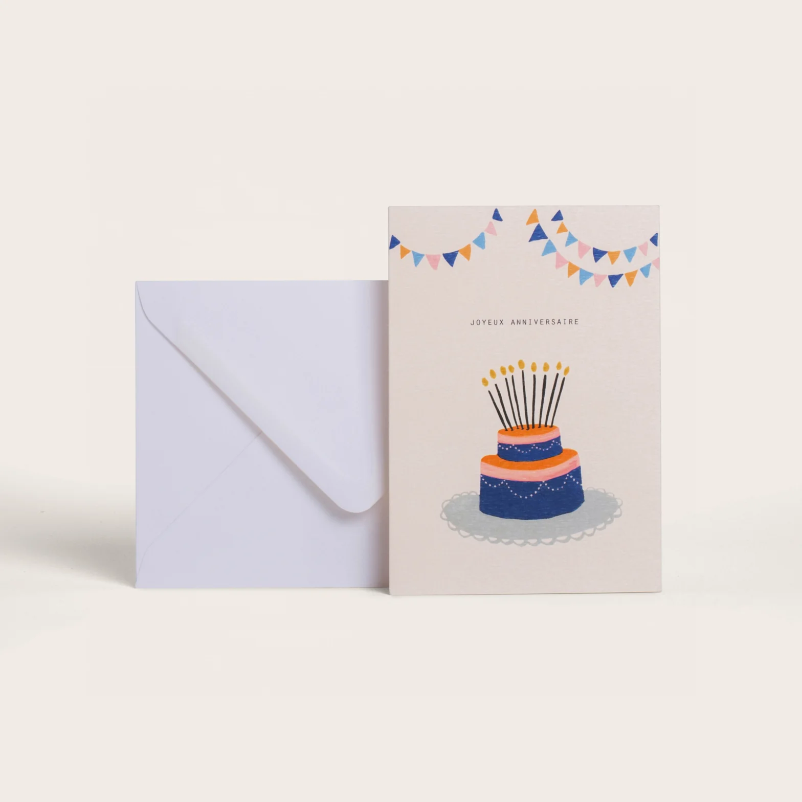 Offrez cette jolie carte Cake « Joyeux Anniversaire », son gros gateau et ses guirlandes feront des heureux.