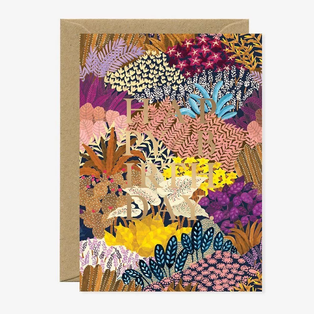 Carte A6 (105mm x 148mm) Détails feuille d’or Papier blanc naturel 300 gr Intérieur vierge Cette carte d’anniversaire est vendue avec une enveloppe A6 marron recyclée.